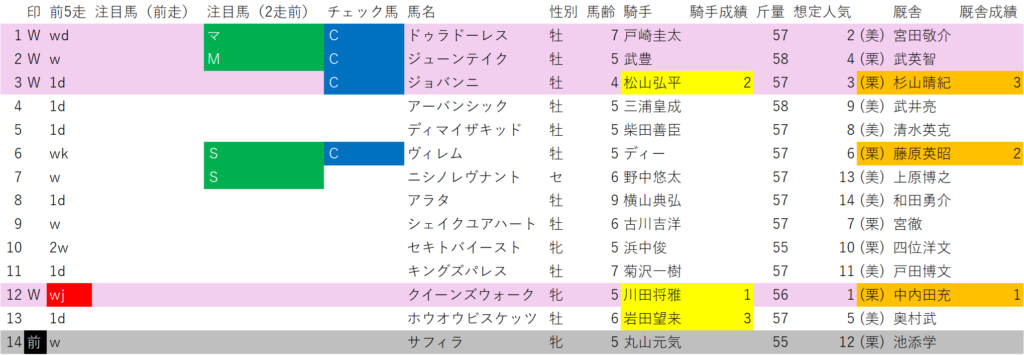 出走メンバー中、半数が消せる馬で買える馬が5頭。