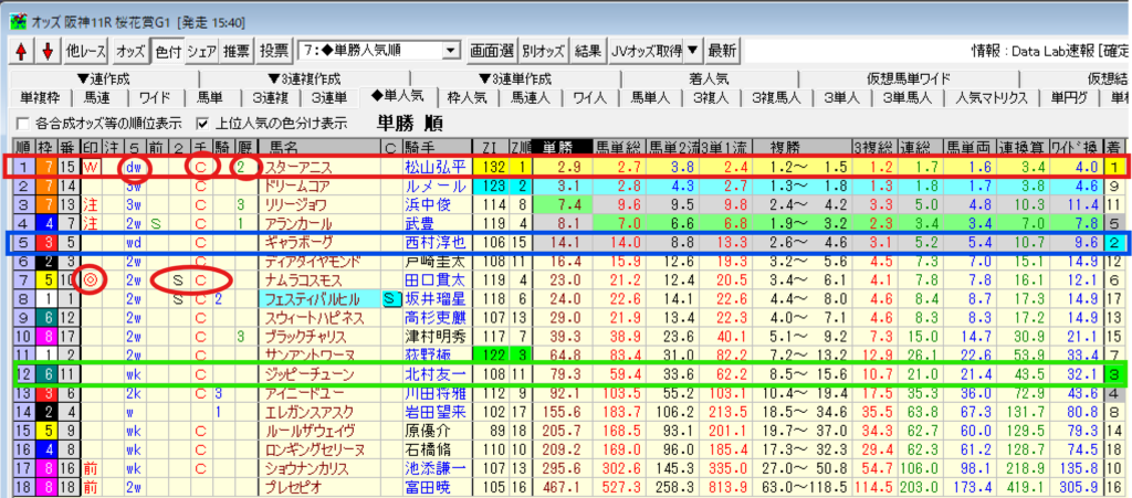 大阪杯の章でも、解説しましたが、唯一の前5走GⅠ勝ち馬であり、他のデータも重複するスターアニスがここでも、勝利を示唆し、Win5でも1点勝負で大的中。