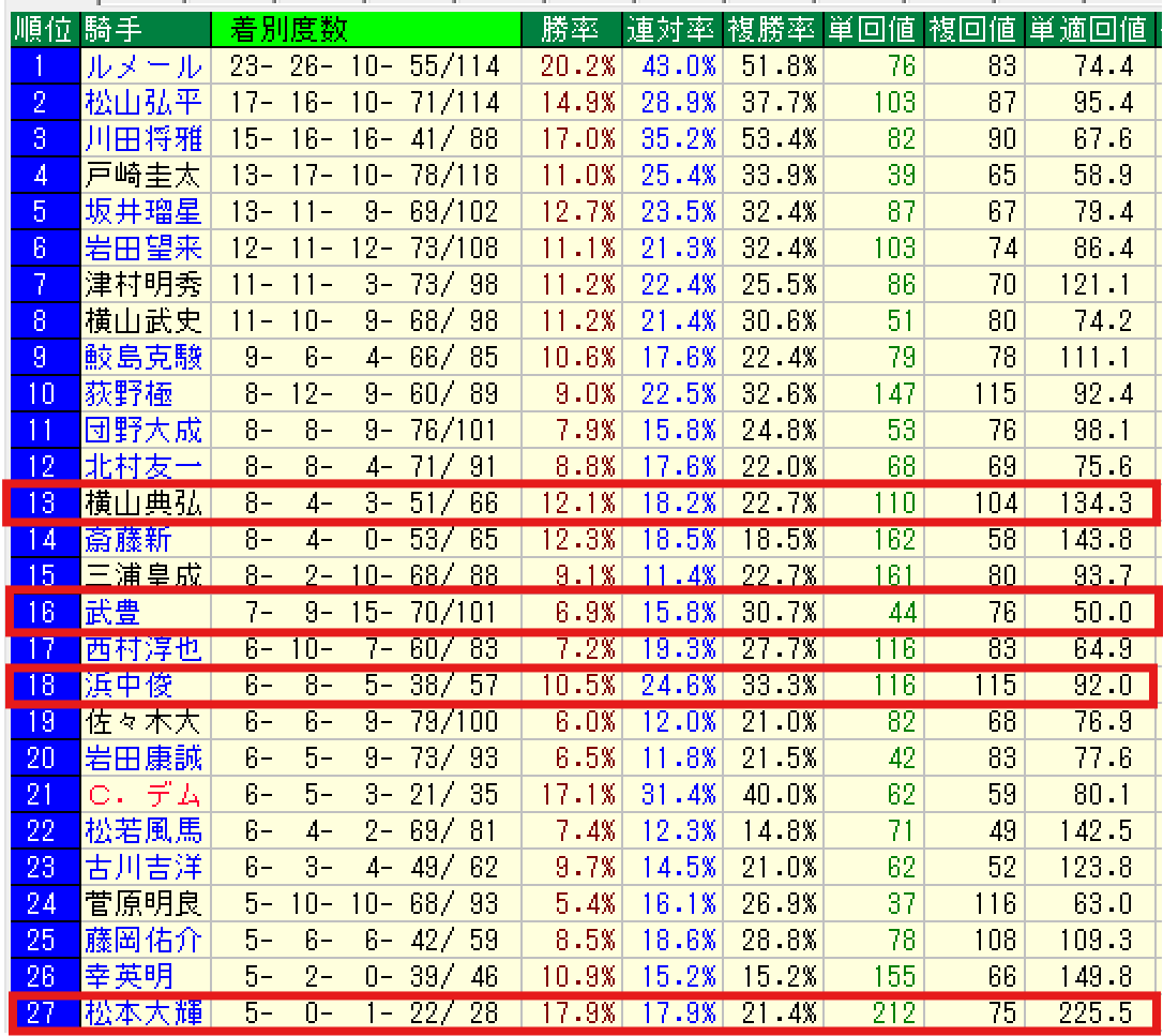 今回は松本大輝、国分優作騎手が該当します。